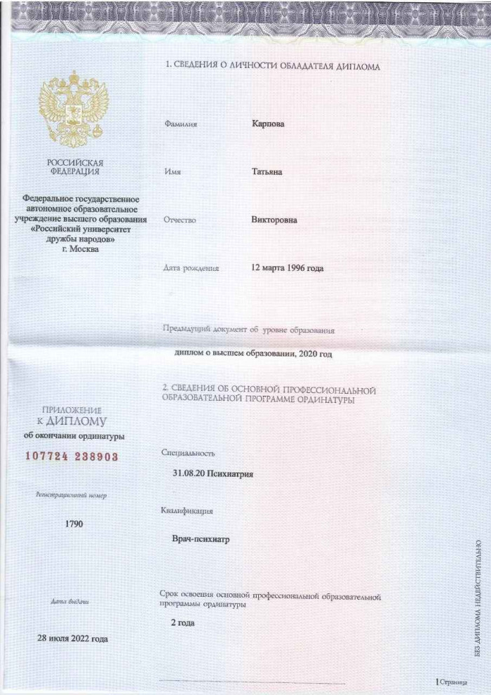 «Как психиатр-нарколог, я ориентирована на комплексный подход в лечении пациентов, учитывая не только физическое состояние, но и его психологическое состояние. Для меня важно создать атмосферу, где человек чувствует поддержку и заботу. Я убеждена, что каждый шаг на пути к выздоровлению важен, и моя задача — помочь пациенту найти силы изменить свою жизнь».
